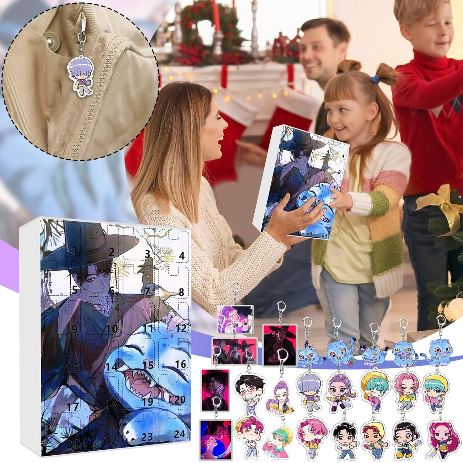 Advent Calendar 2025 24Pcs Keychain Countdown Calendar Anime Pendant Keychains Holder Car Key Ring Bag Hanging