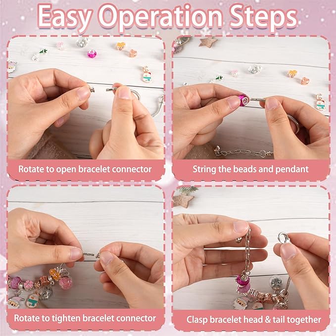 - Perfect Holiday Gift: This charm bracelet making Kit is the ideal Christmas or birthday gift that combines creativity, surprise, and festive joy for kids over 3 years old, teens and women who enjoy crafting and jewelry-making. They're suitable for mom, sisters, nieces, or best friends, filling the holiday season with love and little moments of happiness