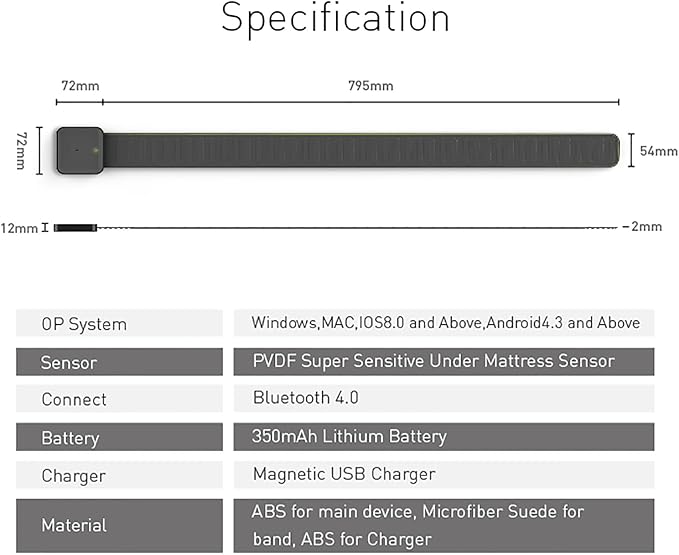 Smart Sleep Analyzer, Sleep Monitor, Sleep Tracker with Non-Contact Under Mattress Sensor, Non-wearable Design and Compatible with Android/iOS, Data Tracking and Analysis for Sleeping Better